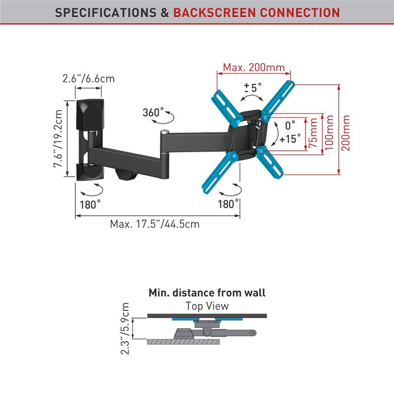 BASE 4 MOVIMIENTOS BARKAN; ROTA, DOBLA, GIRATORIA E INCLINADA 13″ A 43″ 25KG