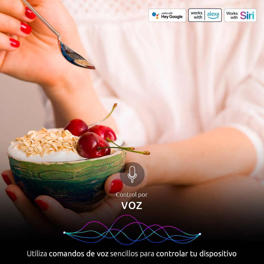 Utiliza comandos de voz sencillos para controlar tu dispositivo inteligente a través de Amazon Alexa o Google AssistantTM.
