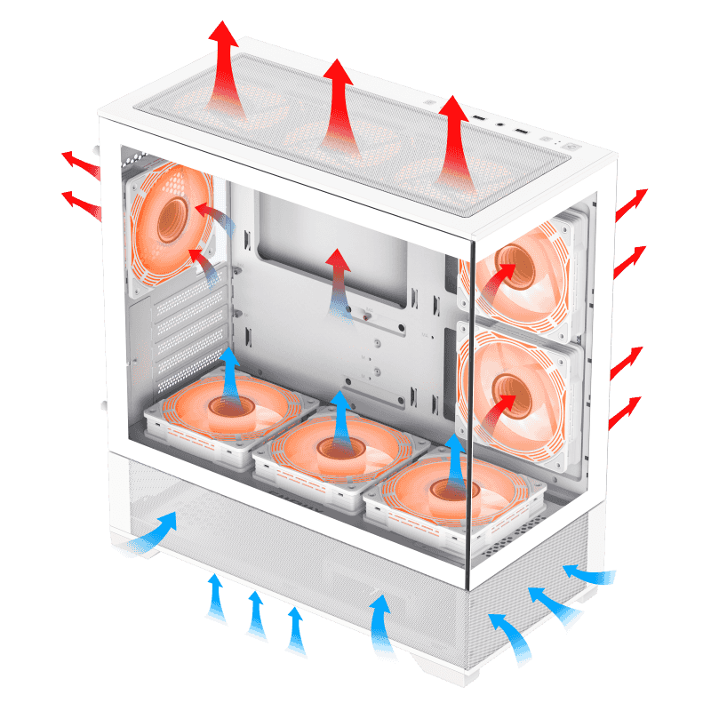 Gabinete ATX para PC con torre Micro ATX de Vista: apariencia estética, enfoque en el flujo de aire, fácil instalación y amplio espacio para GPU grandes y administración de cables.
