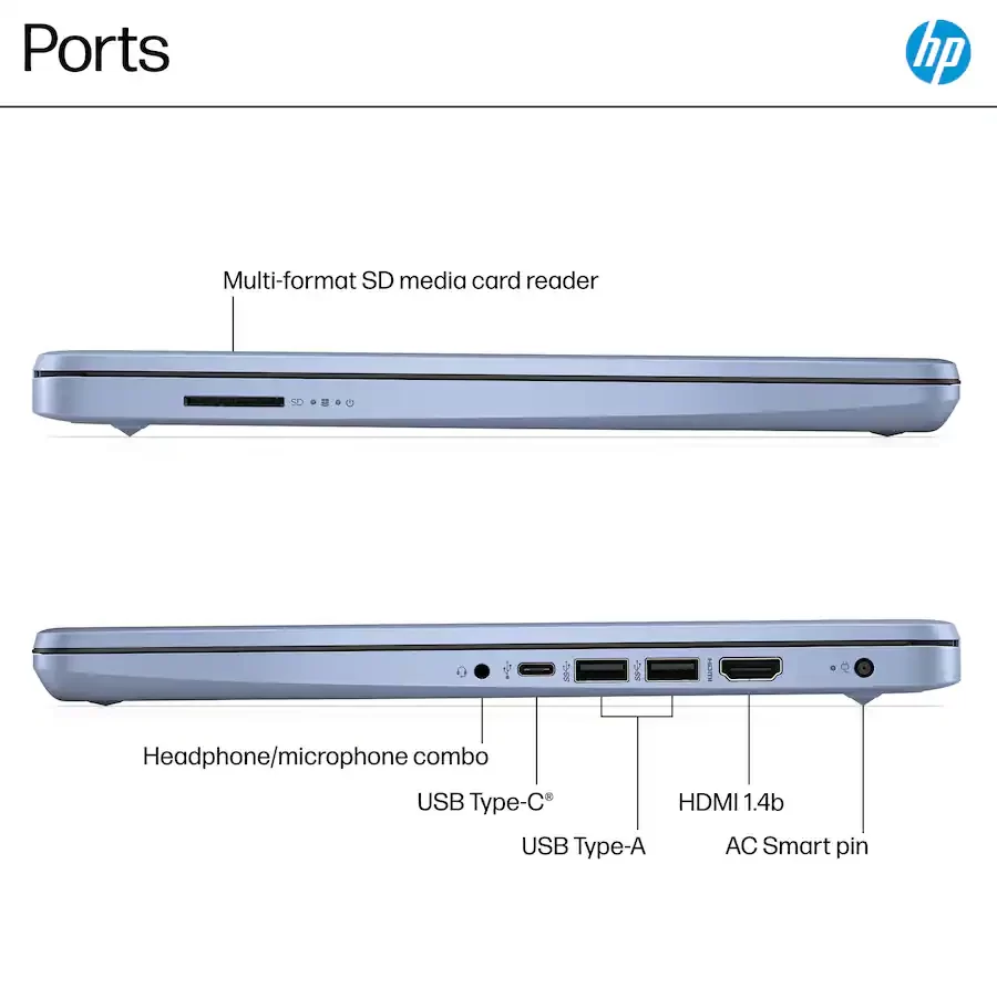 Laptop HP 14″ N150 4GB RAM 128GB SSD UFS Sky Blue | Ligera, Rápida y Perfecta para Estudio