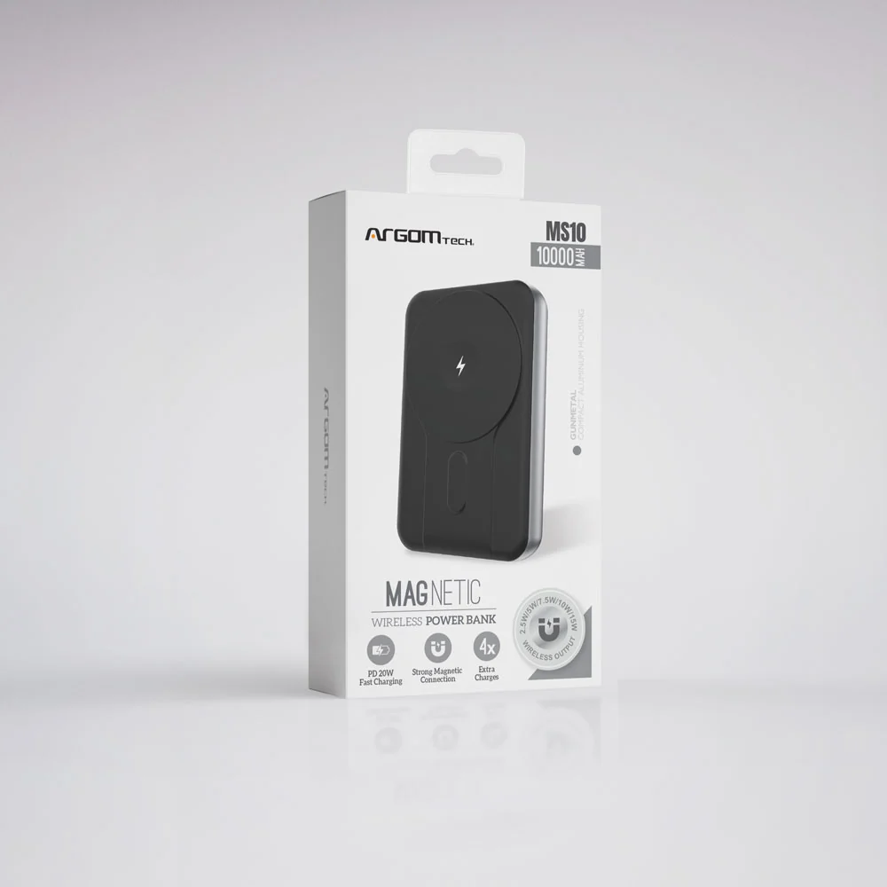 POWER BANK ARGOM MS10 MAGNETICO/ 10000mAH/ ALUMINIUM SILVER