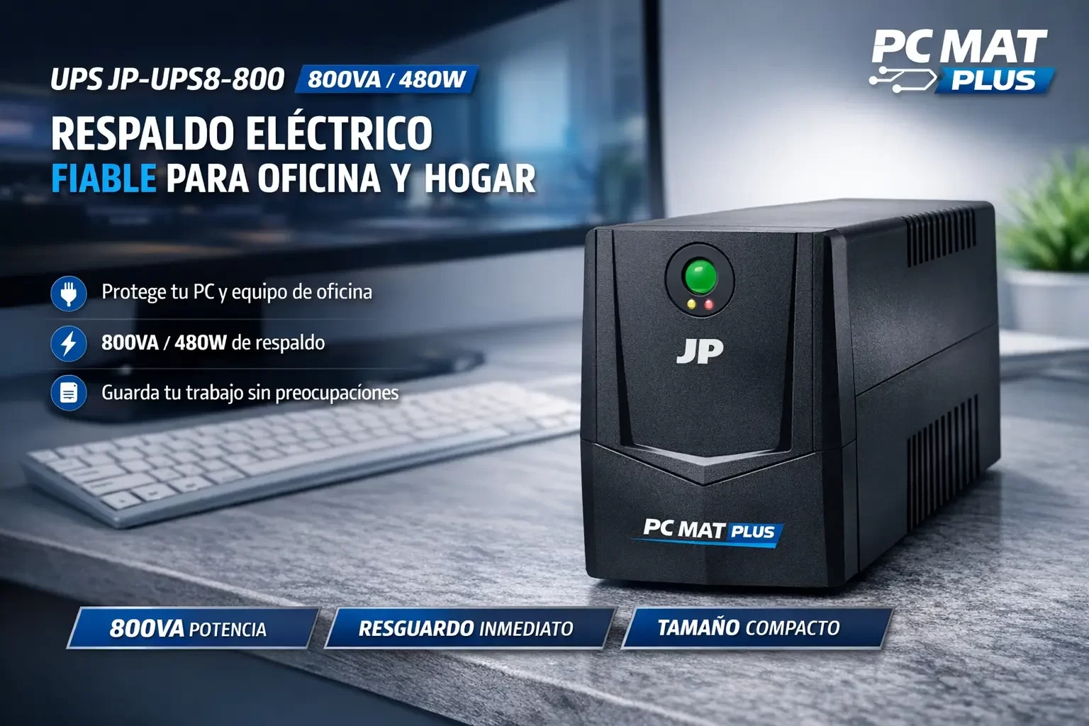 UPS JP-UPS8-800 800VA / 480W | Respaldo Eléctrico Confiable para Oficina y Hogar – PC MAT PLUS